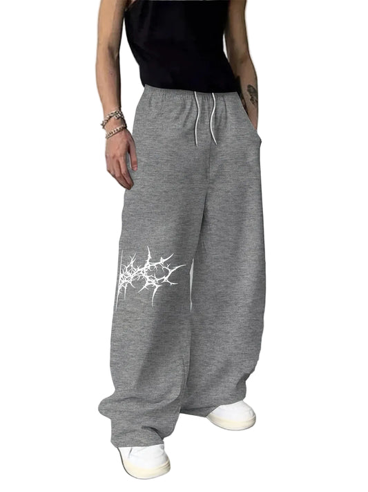 Męskie Spodnie Wide Leg Streetwear – Luźny Styl Urban z Grafiką