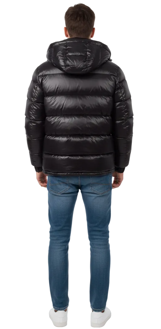 Męska Kurtka Puffer Glossy z Kapturem – Minimalistyczny Styl Urban Casual